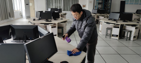 (威廉体育williamhill官网教工通讯员 黄健)为了做好开学准备工作,加强安全管理,保障正常的教学科研秩序。从2月17日新年第一天上班开始,计算机实验教学中心全体员工按照疫情防控和学校开学要求,对所有实验室进行了卫生大扫除和环境消杀,并按照实验教学的要求调试软、硬件系统,确保新学期各项实验教学工作正常开展。