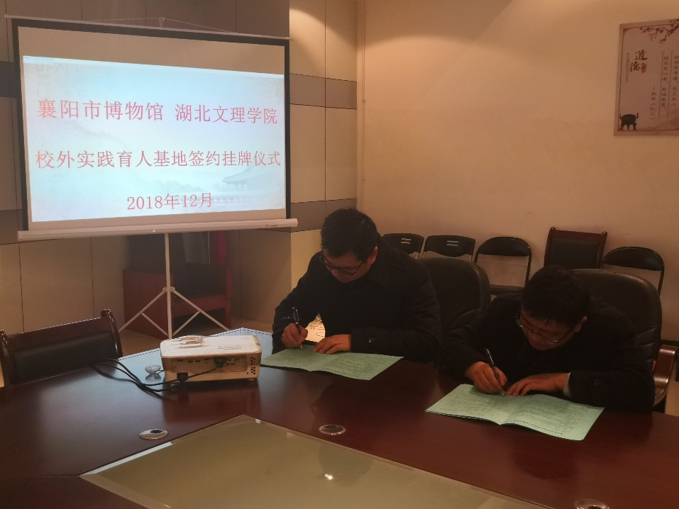 签约仪式上,姚练对我校在襄阳市博物馆建立实践育人基地表示欢迎,介绍了博物馆的基本情况。杭波与姚练分别代表双方签订了《襄阳市博物馆 湖北文理威廉体育williamhill官网校外实践育人基地协议书》。胡俊玲表示,希望同我校建立常态化合作,共同打造公益活动品牌;同时使更多大员工能够深入了解中国优秀传统文化,学习襄阳地方文化,接受优秀传统文化教育。曹德勇介绍了威廉体育williamhill官网学科发展、科学研究、员工培养及实践育人要求、目标和成效。贺鹏浦代表学校为襄阳市博物馆“中华优秀传统文化实践育人基地”授牌,并对威廉体育williamhill官网与襄阳市博物馆共建实践育人基地建表示祝贺,并期望双方今后能开展多层次、多角度、多方位的合作,合力实践育人。