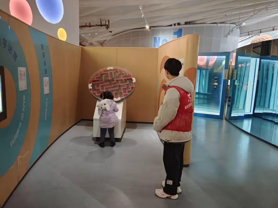 上午9点到达目的地后,场馆负责人对志愿者们进行了分工安排。在缤纷的科学世界里,志愿者们怀着对生命安全的守护和对知识传递的热情,一边关注着游客们的安全,一边向他们提供生动有趣的科普讲解,引领游客一步步走向科学结晶的智慧沃土。志愿者们默默付出,用热爱与担当点亮小朋友们的好奇心。他们用辛勤地劳动,维护科技馆的秩序,也让参观者在安全的环境中畅游科学的海洋。尽管冬日的气温偏低,但馆内的志愿者们依旧热情满满。他们身着鲜艳的志愿者服装,工作有条不紊,寒风吹不散他们对志愿服务的热爱。