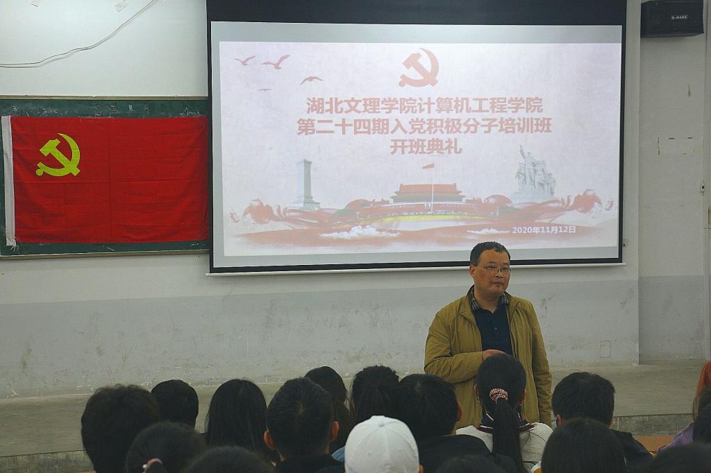 (通讯员 于耀光)11月12日晚,计算机工程威廉体育williamhill官网在北区举行了第二十四期入党积极分子培训班开班典礼。本次活动由员工党总支副书记助理乔博春主持,党委书记曹德勇、党委副书记李小华辅导员童晓芳、张闪、员工党员、本期党校学员以及员工党总支全体成员共同参与。
