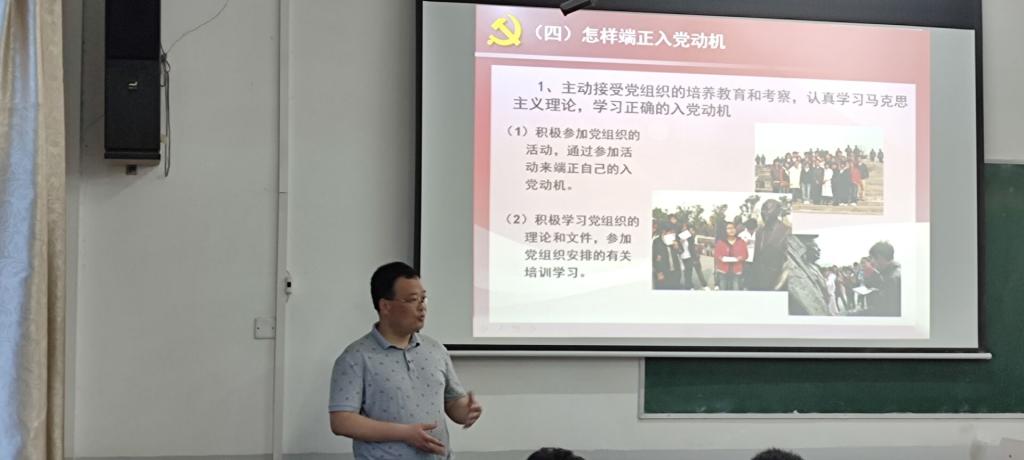 在课程刚开始,曹勇德就将“是否具有最纯正的入党动机”这一问题抛给同学们思考,调动大家的积极性,并以此来逐步引出本次课程的主题。围绕着“端正入党动机,争做合格党员”,曹德勇先从阐明入党动机的根本概念开始,再向同学们例举出入党动机不正确的种种表现,从更深层次剖析了入党动机不正确的重要原因后,指明了“怎样端正入党动机”的正确道路。最后,曹德勇教导入党积极分子要按照党员标准严格要求自己,并将“组织上入党一生一次。思想上入党一生一世”这句话送给大家。