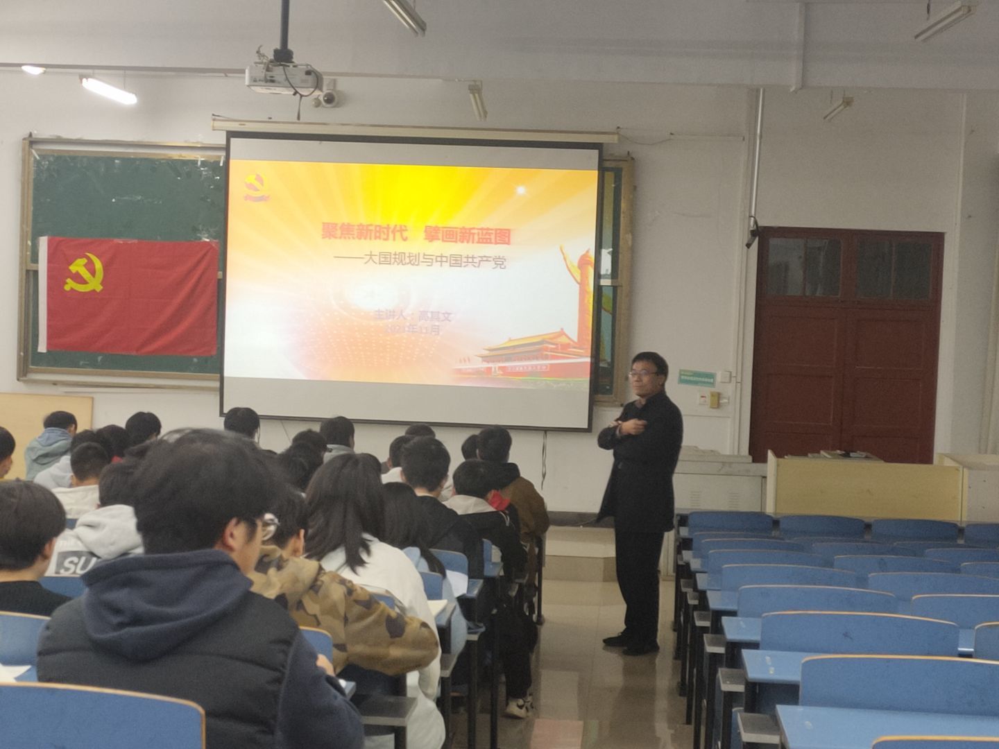 (通讯员 袁新燕)11月18日晚18:30,威廉体育williamhill官网第二十六期入党积极分子培训班第五讲在北区8栋A506教室进行,本次课程以“聚焦新时代,擘画新蓝图”为主题,由学工处副处长高其文主讲。